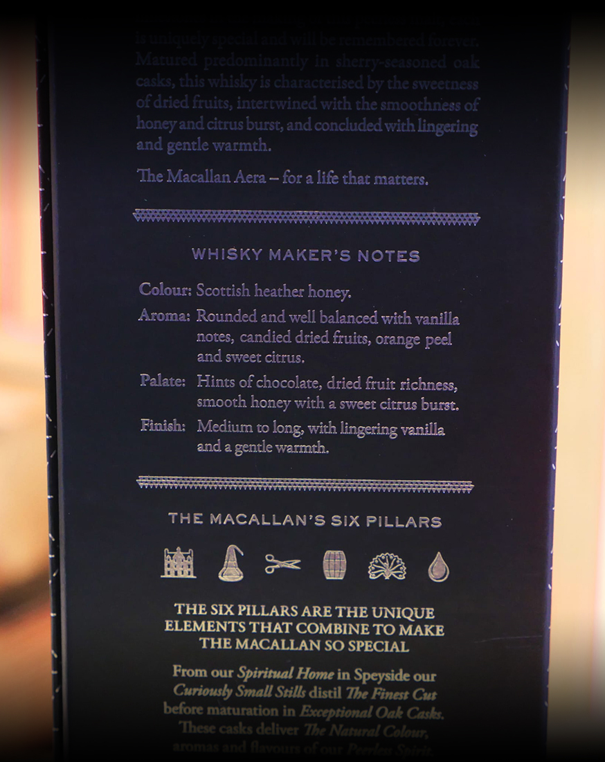 Die Macallan Aera war ausschließlich für den taiwanesischen Markt bestimmt. Entsprechend in unseren Breitengraden nur schwierig bis gar nicht zu bekommen.